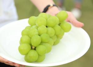 主な種類は、皮ごと食べられる「シャインマスカット」、大きな実が特徴の「ピオーネ」、糖度が高くコクがある珍しい品種の「高墨」です。