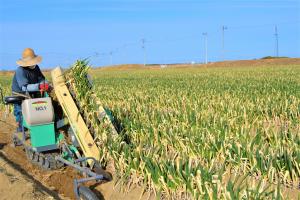 畑一面に広がるネギ ネギ収穫風景